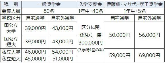 ※一般奨学金または伊藤奨学金のいずれか一つの貸与です。ただし、入学支度金との重複貸与は可能です。