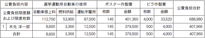 ※市議会議員補欠選挙は無投票の為、自動車借上料、燃料供給、運転手雇用については1日分のみ。