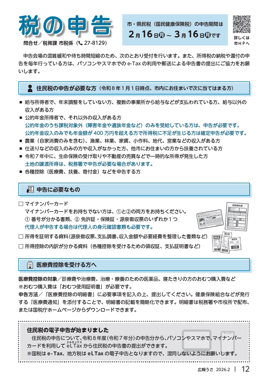 くらし 広報うさ 令和8年2月号 P.12 12/24 前の記事 次の記事 発行日 : 2026年01月25日 自治体名 : 大分県宇佐市 広報紙名 : 広報うさ 令和8年2月号 Tweet シェアする 広報うさ 令和8年2月号 P.11 広報うさ 令和8年2月号 P.13