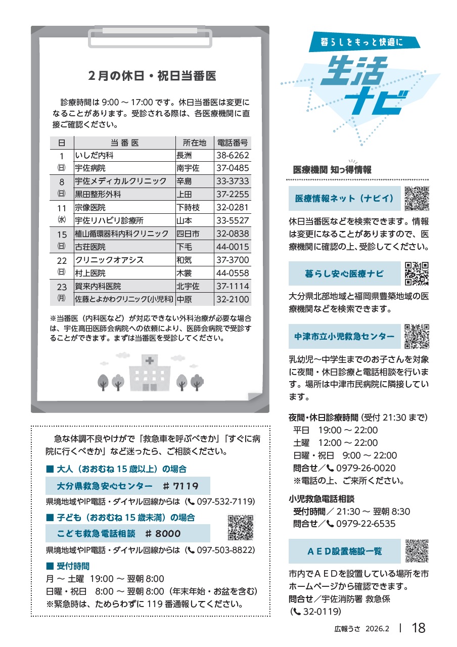 くらし 広報うさ 令和8年2月号 P.18 18/24 前の記事 次の記事 発行日 : 2026年01月25日 自治体名 : 大分県宇佐市 広報紙名 : 広報うさ 令和8年2月号 Tweet シェアする 広報うさ 令和8年2月号 P.17 広報うさ 令和8年2月号 P.19