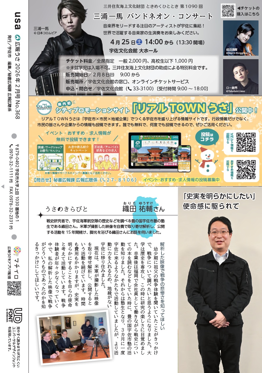 その他 広報うさ 令和8年2月号 P.24 24/24 前の記事 発行日 : 2026年01月25日 自治体名 : 大分県宇佐市 広報紙名 : 広報うさ 令和8年2月号 Tweet シェアする 広報うさ 令和8年2月号 P.23