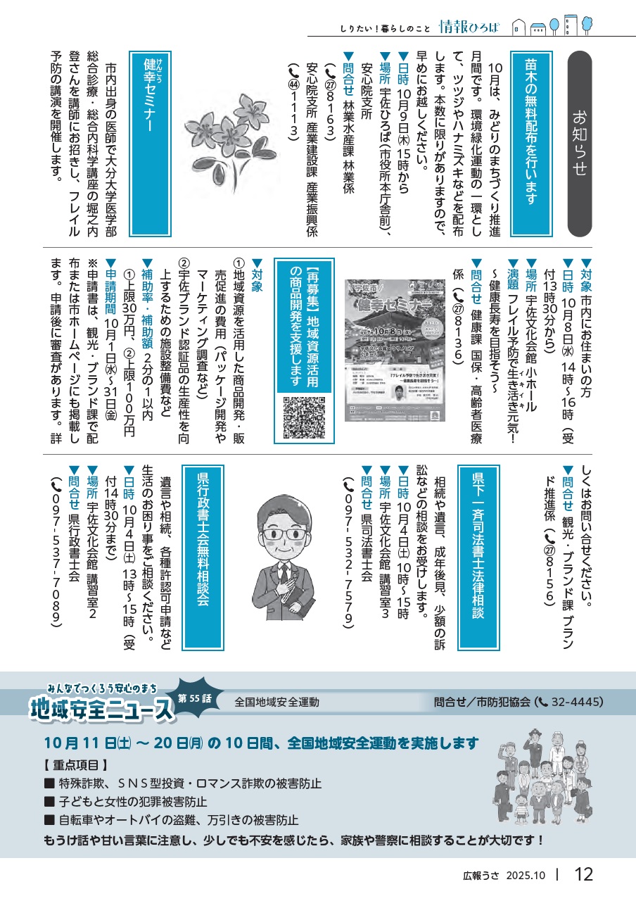 その他 広報うさ 令和7年10月号 P.12 12/26 前の記事 次の記事 発行日 : 2025年09月25日 自治体名 : 大分県宇佐市 広報紙名 : 広報うさ 令和7年10月号 Tweet シェアする 広報うさ 令和7年10月号 P.11 広報うさ 令和7年10月号 P.13