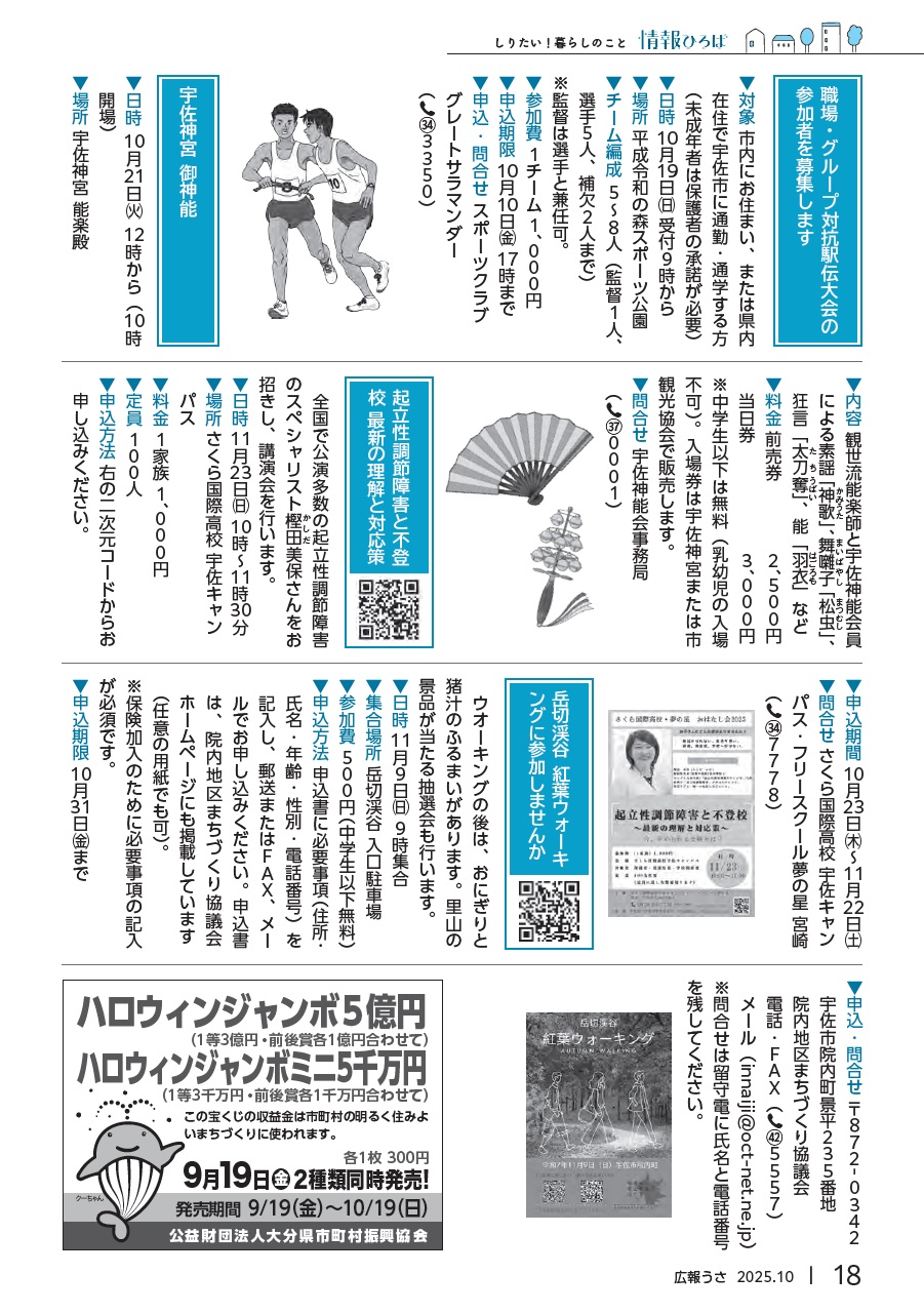 イベント 広報うさ 令和7年10月号 P.18 18/26 前の記事 次の記事 発行日 : 2025年09月25日 自治体名 : 大分県宇佐市 広報紙名 : 広報うさ 令和7年10月号 Tweet シェアする 広報うさ 令和7年10月号 P.17 広報うさ 令和7年10月号 P.19