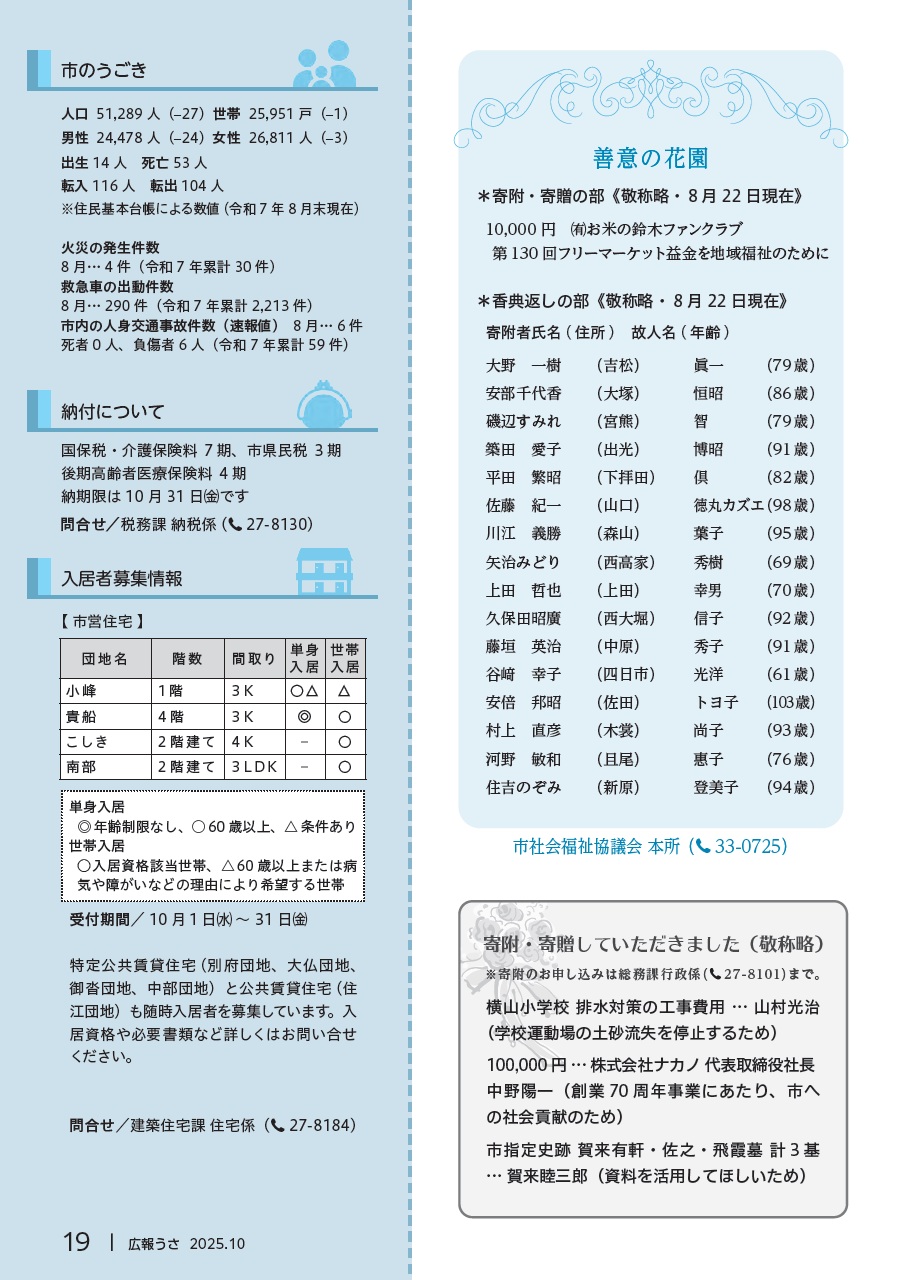 その他 広報うさ 令和7年10月号 P.19 19/26 前の記事 次の記事 発行日 : 2025年09月25日 自治体名 : 大分県宇佐市 広報紙名 : 広報うさ 令和7年10月号 Tweet シェアする 広報うさ 令和7年10月号 P.18 広報うさ 令和7年10月号 P.20