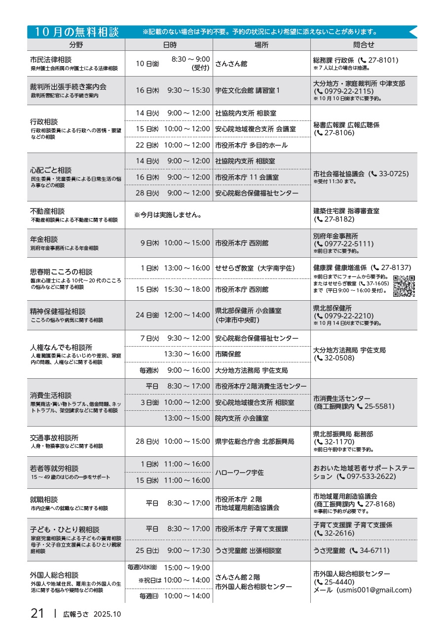 くらし 広報うさ 令和7年10月号 P.21 21/26 前の記事 次の記事 発行日 : 2025年09月25日 自治体名 : 大分県宇佐市 広報紙名 : 広報うさ 令和7年10月号 Tweet シェアする 広報うさ 令和7年10月号 P.20 広報うさ 令和7年10月号 P.22