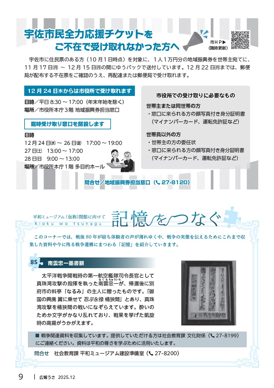 くらし 広報うさ 令和7年12月号 P.9 9/26 前の記事 次の記事 発行日 : 2025年11月25日 自治体名 : 大分県宇佐市 広報紙名 : 広報うさ 令和7年12月号 Tweet シェアする 広報うさ 令和7年12月号 P.8 広報うさ 令和7年12月号 P.10