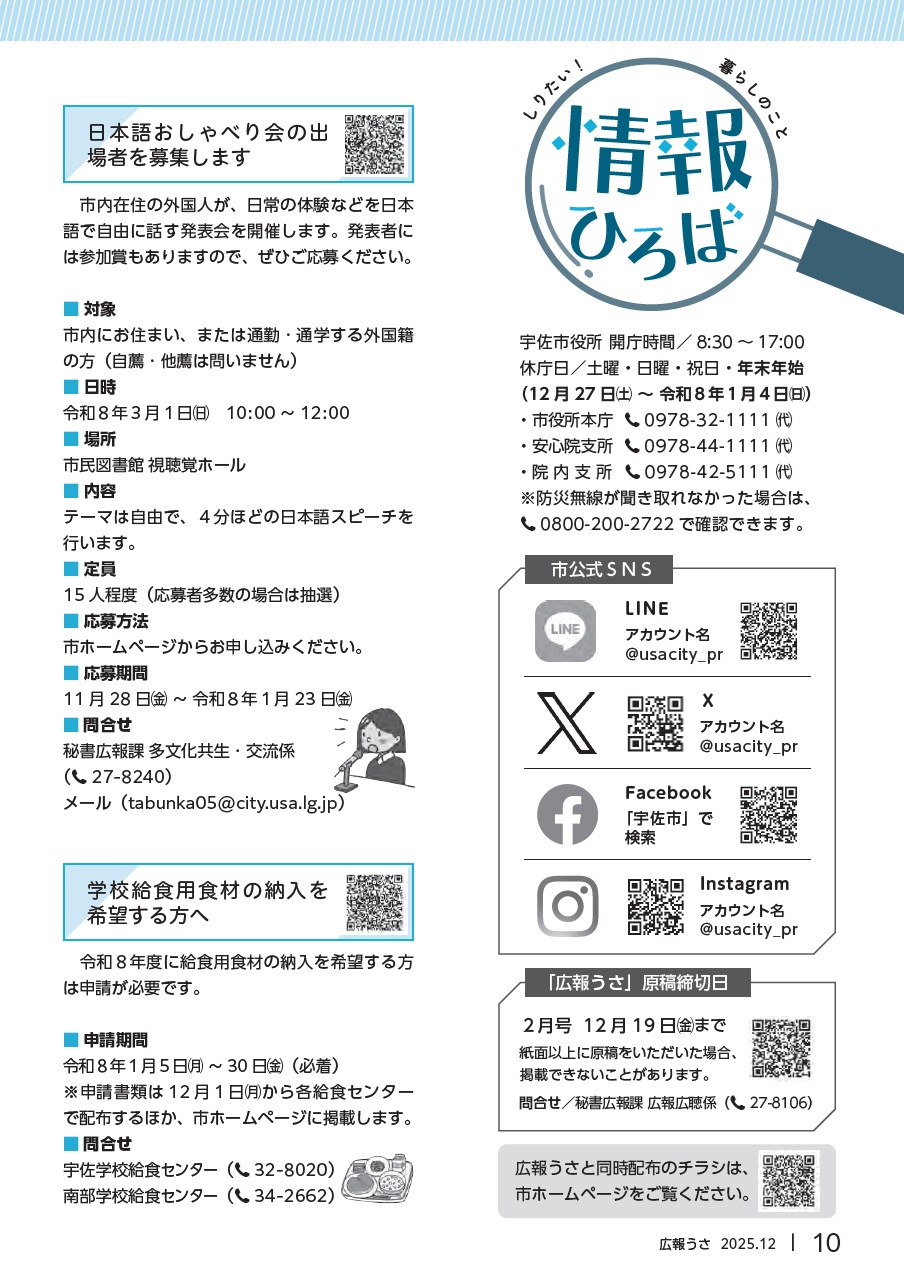 その他 広報うさ 令和7年12月号 P.10 10/26 前の記事 次の記事 発行日 : 2025年11月25日 自治体名 : 大分県宇佐市 広報紙名 : 広報うさ 令和7年12月号 Tweet シェアする 広報うさ 令和7年12月号 P.9 広報うさ 令和7年12月号 P.11
