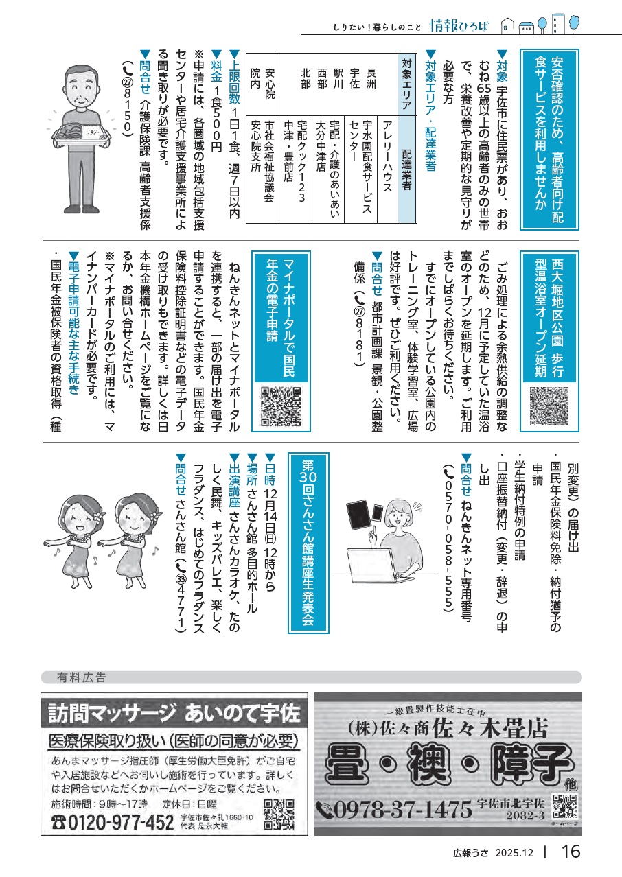 くらし 広報うさ 令和7年12月号 P.16 16/26 前の記事 次の記事 発行日 : 2025年11月25日 自治体名 : 大分県宇佐市 広報紙名 : 広報うさ 令和7年12月号 Tweet シェアする 広報うさ 令和7年12月号 P.15 広報うさ 令和7年12月号 P.17