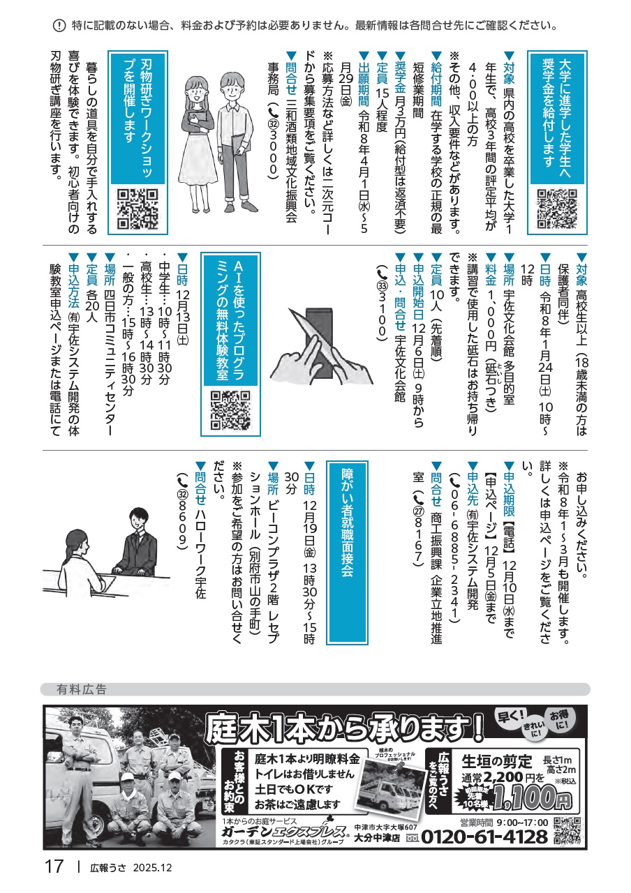 その他 広報うさ 令和7年12月号 P.17 17/26 前の記事 次の記事 発行日 : 2025年11月25日 自治体名 : 大分県宇佐市 広報紙名 : 広報うさ 令和7年12月号 Tweet シェアする 広報うさ 令和7年12月号 P.16 広報うさ 令和7年12月号 P.18