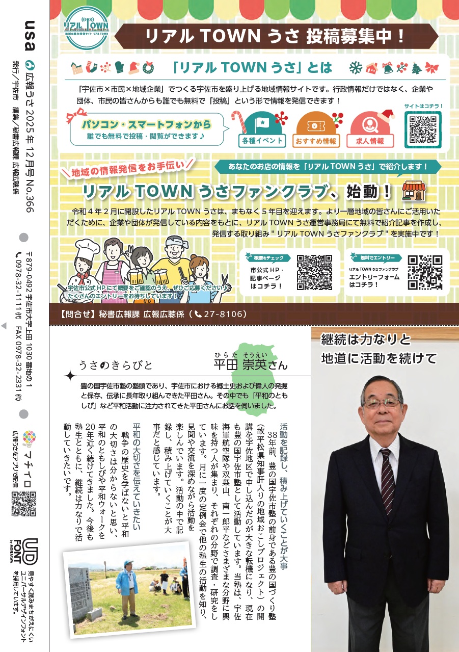 その他 広報うさ 令和7年12月号 P.26 26/26 前の記事 発行日 : 2025年11月25日 自治体名 : 大分県宇佐市 広報紙名 : 広報うさ 令和7年12月号 Tweet シェアする 広報うさ 令和7年12月号 P.25