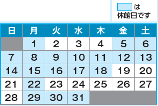 年末年始の休館期間:12月29日(月)~1月4日(日)