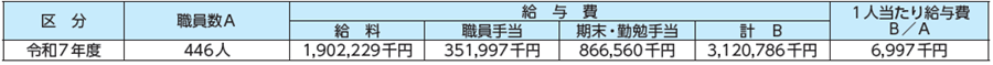 (3)職員の平均給料月額および平均年齢の状況(令和7年4月1日現在)