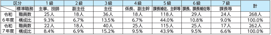 (6)一般行政職の級別職員数の状況(令和7年4月1日現在)