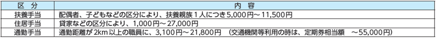 3)扶養手当、住居手当および通勤手当(令和7年4月1日現在)