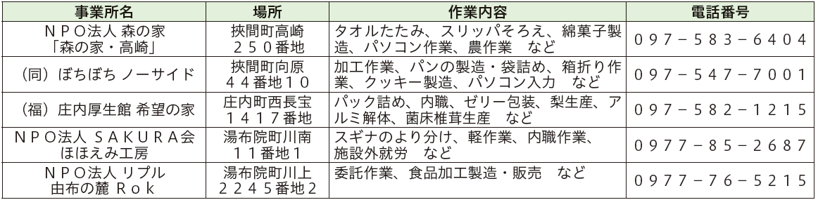 ■由布市内の就労支援事業所(就労継続支援A型・B型)のご案内