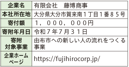 「企業版ふるさと納税」は、企業(青色申告書を提出している法人に限る)を対象とし、内閣府に認可された、由布市の地方創生に係る事業へ活用されることを目的として、寄附を行うことが可能な制度です。