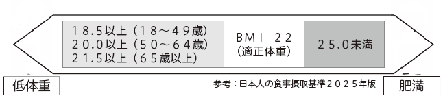 〈BMIの計算方法〉体重(kg)÷{身長(m)}²