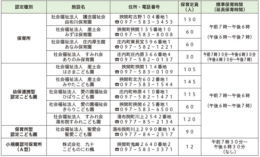 対象:由布市在住の未就学(令和2年4月2日以降生まれ)の児童で、保護者の仕事や病気、出産などの理由により、家庭内において、必要な保育を受けることができない児童