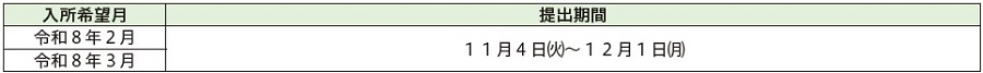 注意事項:現在保育所等に入所しており、令和8年度以降も継続して入所希望する方に関しても、上記の受付期間内に提出されない場合、令和8年4月からの入所ができませんのでご注意ください。