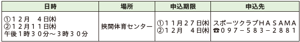 持ち物:運動のできる服装、うわばき、タオル、飲み物