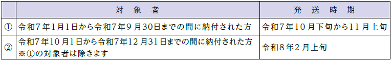 ●令和7年分「社会保険料(国民年金保険料)控除証明書」発送スケジュール