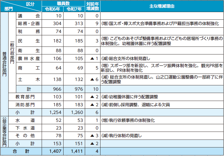 ※職員数は、休職者や派遣職員などを含む部門別の一般職に属する職員の計であり、会計年度任用職員は含まない