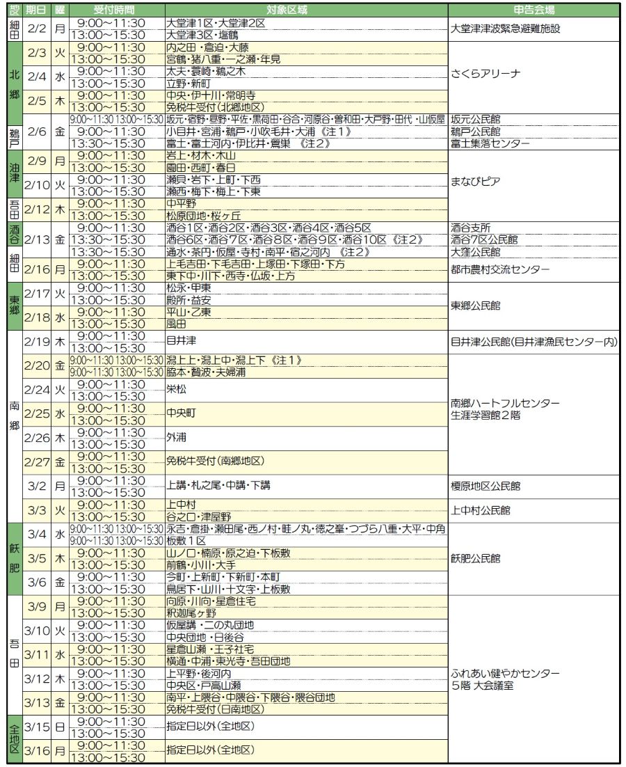 《注2》次の申告会場は、13時30分から受け付けを行います。