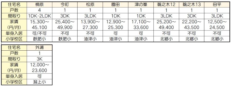 市営住宅:12戸(表内から1戸を選んで申し込んでください)