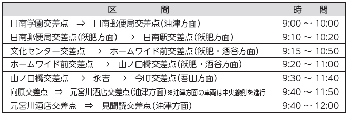 規制時間は、選手の通過時間により前後する場合がございますのであらかじめご了承ください。