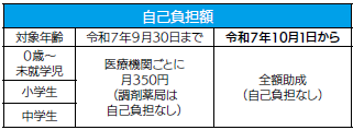 令和7年10月1日診療分から、健康保険の診療対象となる医療費の自己負担額を「全額助成(自己負担なし)」します。