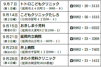 問い合わせ:延岡市夜間急病センター小児科