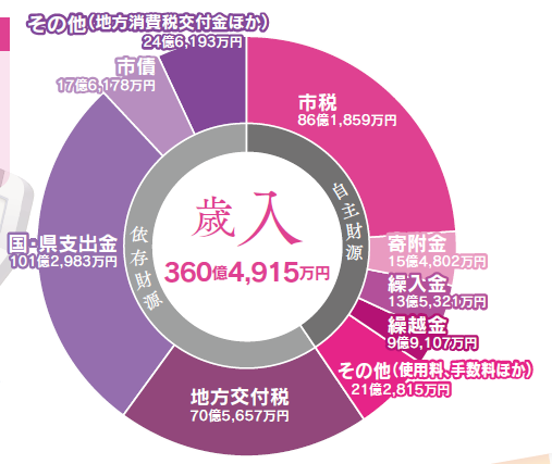 令和6年度の普通会計決算は、歳入総額360億4,915万円(前年度比4.3%増)、歳出総額は351億7,905万円(前年度比5.8%増)となりました。