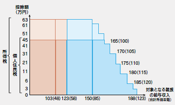 ※3…所得税では収入額が150万円(住民税では160万円)を超えると控除額が段階的に下がります。