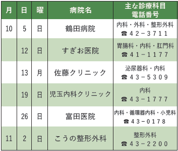 くらし さいとカレンダー〔休日在宅医〕 18/24 前の記事 次の記事 発行日 : 2025年10月01日 自治体名 : 宮崎県西都市 広報紙名 : 広報さいと 2025年10月号 休日在宅医は変更になることがあります。 事前に電話でご確認ください。 ※休日在宅医はテレビでもご確認いただけます。 NHK総合(1 チャンネル)のデータ放送をご覧ください。 Tweet シェアする 人の動き さいとカレンダー〔相談・その他〕