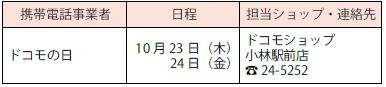 市と株式会社NTTドコモ、KDDI株式会社、ソフトバンク株式会社の携帯電話事業者3社は、えびの市内における携帯電話サービスのサポートなどを確保するために、携帯電話臨時ショップを開設しています。