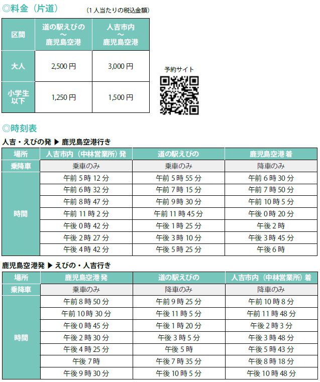 ▽電話予約(道の駅えびの→鹿児島空港)