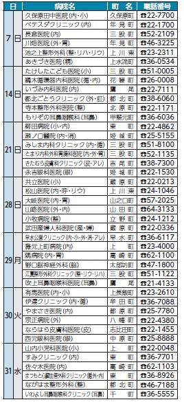 以後の休日急患診療機関については翌月号に掲載します。