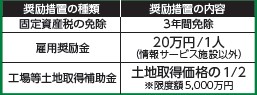 奨励措置は、業種や町内在住者の雇用か否かなど、さまざまな条件により金額等が異なります。