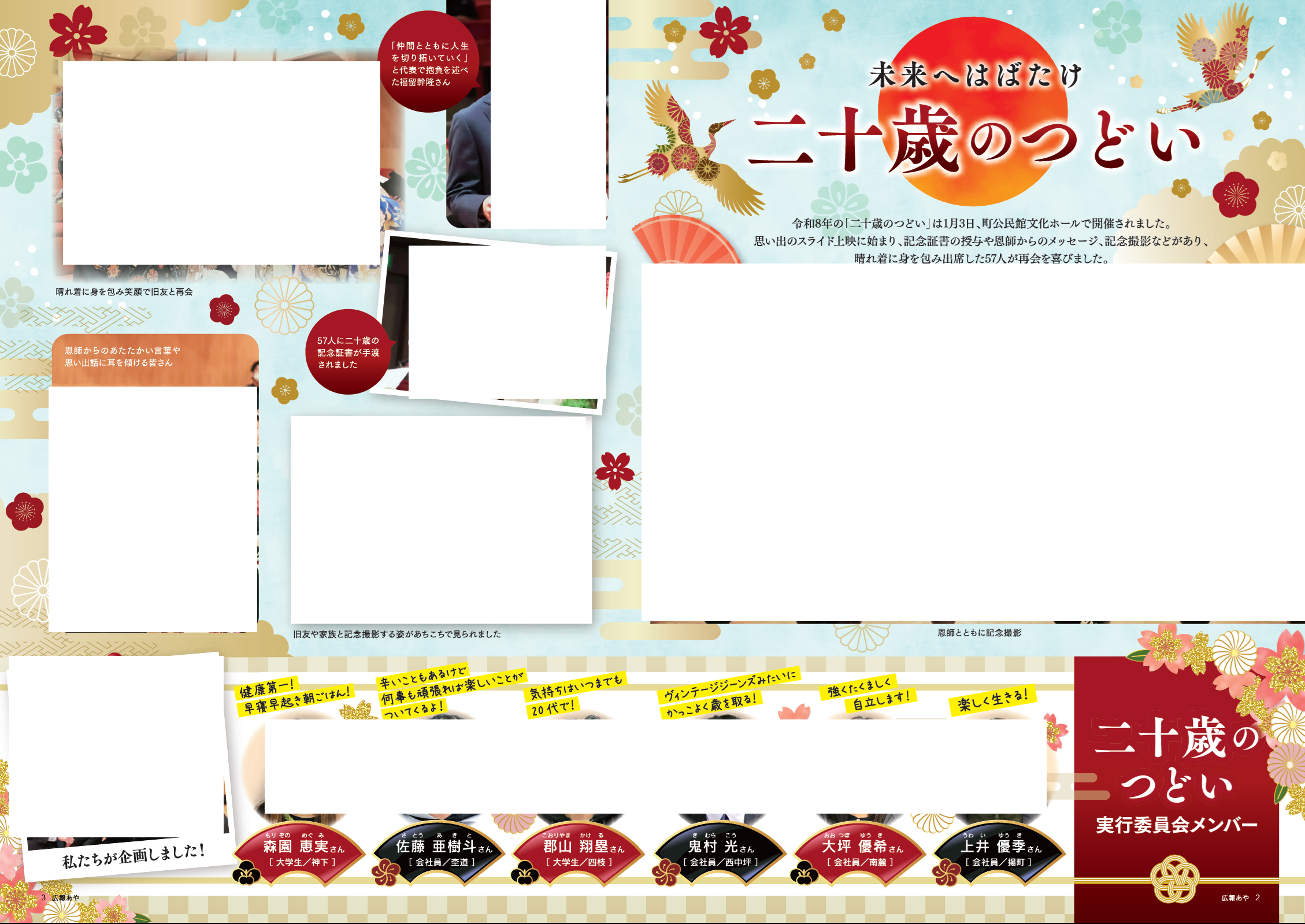 文化 未来へはばたけ二十歳のつどい 1/17 次の記事 発行日 : 2026年01月26日 自治体名 : 宮崎県綾町 広報紙名 : 広報あや 2026年2月号(288号) ※詳しくは広報紙P2.3をご覧下さい。 Tweet シェアする 図書館だより