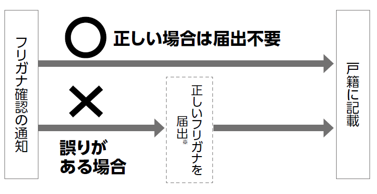 本籍地の市区町村から、戸籍に記載される予定のフリガナの通知が届きます。