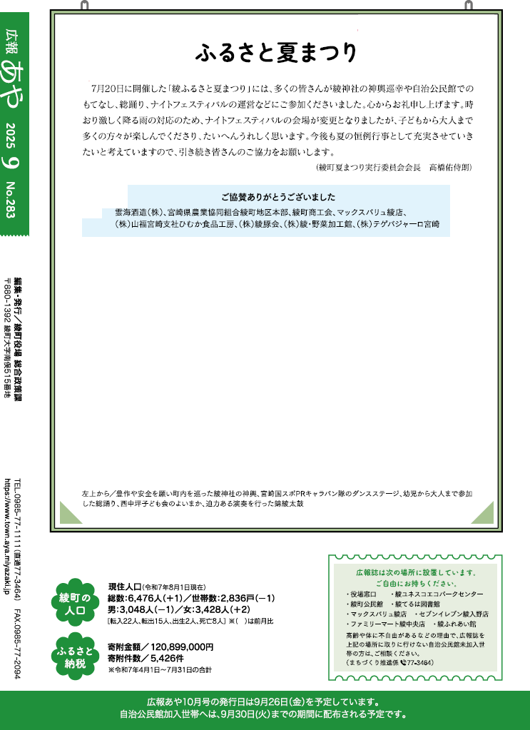 その他 その他のお知らせ(広報あや 2025年9月号(283号)) 14/14 前の記事 発行日 : 2025年08月26日 自治体名 : 宮崎県綾町 広報紙名 : 広報あや 2025年9月号(283号) Tweet シェアする まちの話題
