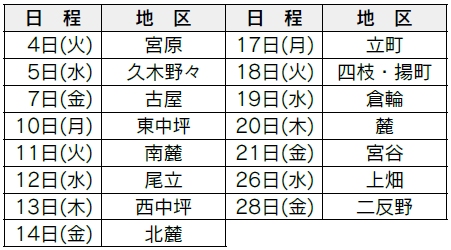 各自治公民館で午前9時30分から行います。ぜひご参加ください。