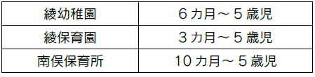 対象施設:綾幼稚園、綾保育園、町立南俣保育所