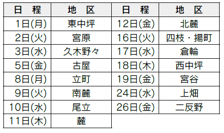 各自治公民館で午前9時30分から行います。ぜひご参加ください。公民館まで行けない場合は送迎しますので、高齢者健幸サポートセンターにお電話ください。