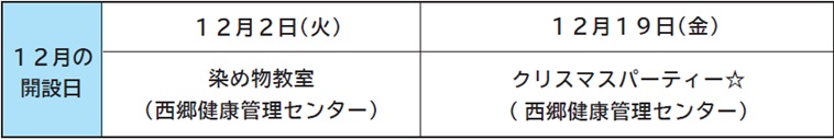 12月の予定は以下のとおりです。みなさんのご参加お待ちしております♪