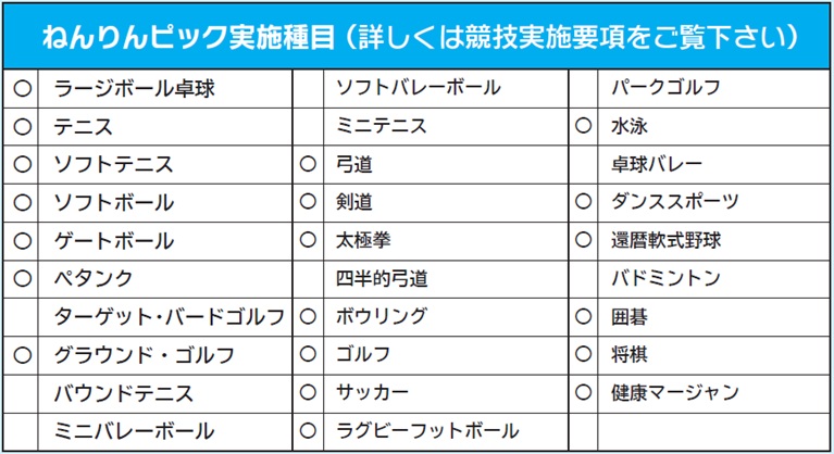 ※○は、第38回全国健康福祉祭埼玉大会の選手選考会を兼ねている種目です。