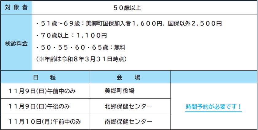 美郷町で行う肺がん検診は、低線量CT検査です。特に、タバコを多く吸う方、以前多く吸っていたことがある方は是非受診してください。