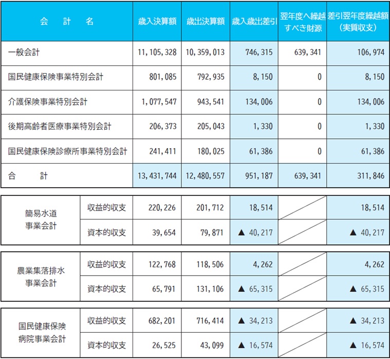 ■令和6年度の美郷町の一般会計、各特別会計及び公営企業会計の決算は次のとおりです