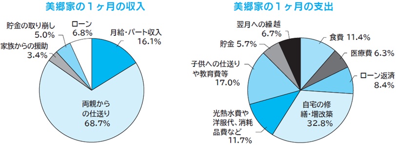 収入では、月給·パート収入が48,339円で、前月から約5,000円程の減収となり、全収入の16.1%にとどまったため、お互いの両親から全体の68.7%となる206,111円の仕送りをしてもらっています。それでも不足する分はローンを組んだり、貯金を取り崩したり、家族からの援助をお願いすることで、ひと月の必要額30万円を確保しました。