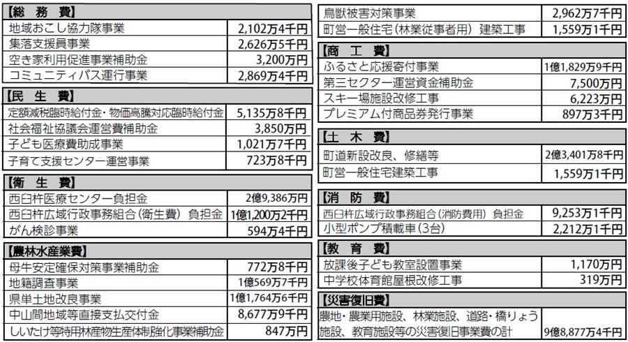 歳出については、令和4年台風14号災害により2シーズン休業を余儀なくされたスキー場の再開に向けた施設改修等に伴い維持補修費が前年比39.3%の増、同じく令和4年台風災害に伴う災害復旧事業が本格化したことにより、災害復旧費が前年比1.5%増となった一方で、病院事業会計への繰出金の減額で、繰出金が19.9%の減となりました。また、近年取り崩しを行ってきた財政調整基金について、今年度は余剰財源を一部積み立てたことにより、積立金が前年比68.8%の増となりました。